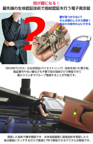 指紋認証電子錠 指が鍵になるBIOMETLOCK 生体認証ロック 電子錠 指紋認証 ピッキング防止 セキュリティ USB充電 電子キー 最薄 軽量 暗証番号不要 バイオメトロック 世界最先端 未来の南京錠 指紋でアンロック 想いを繋ぐ百貨店【TSUNAGU】